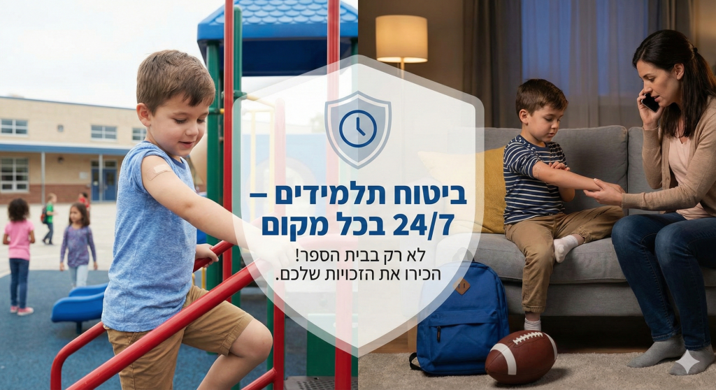 המציאות: פוליסת ביטוח תאונות תלמידים חלה על הילד שלכם 24 שעות ביממה, 365 ימים בשנה, בכל מקום בישראל (ולעיתים גם בחו"ל).